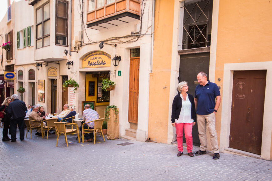 An einer Kreuzung von La Rambla, zwischen Restaurants, Cafés und Geschäften, besitzen Björn und Carina Arkhult eine kleine Wohnung. Vom Balkon aus können Sie die engen Gassen zwischen der Kirche und schönen Gebäuden sehen. Eine Treppe führt zu zwei der beliebtesten Bars Palmas, Babel und Café L’Antiquari.